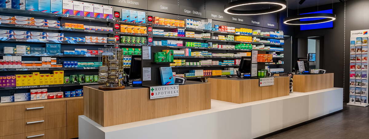 Im Rotpunkt Onlineshop können Sie das Sortiment und die Verfügbarkeit der Produkte in unserer Apotheke bequem online abfragen. Sparen Sie Zeit, in dem Sie die Produkte reservieren. So ist Ihre Bestellung bereits für Sie vorbereitet und muss nur noch abgeholt und bezahlt werden.